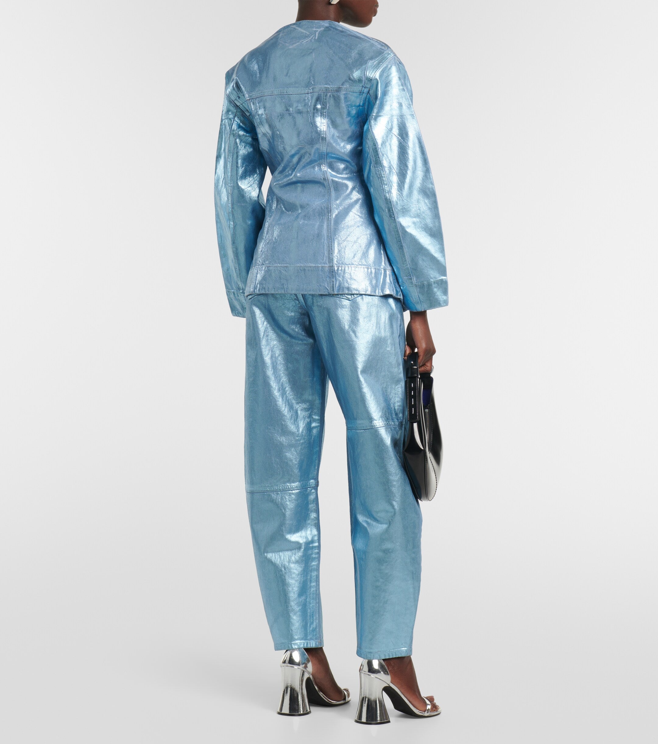 GANNI Metalik Denim Blazer/Barrel Pantolon Takım