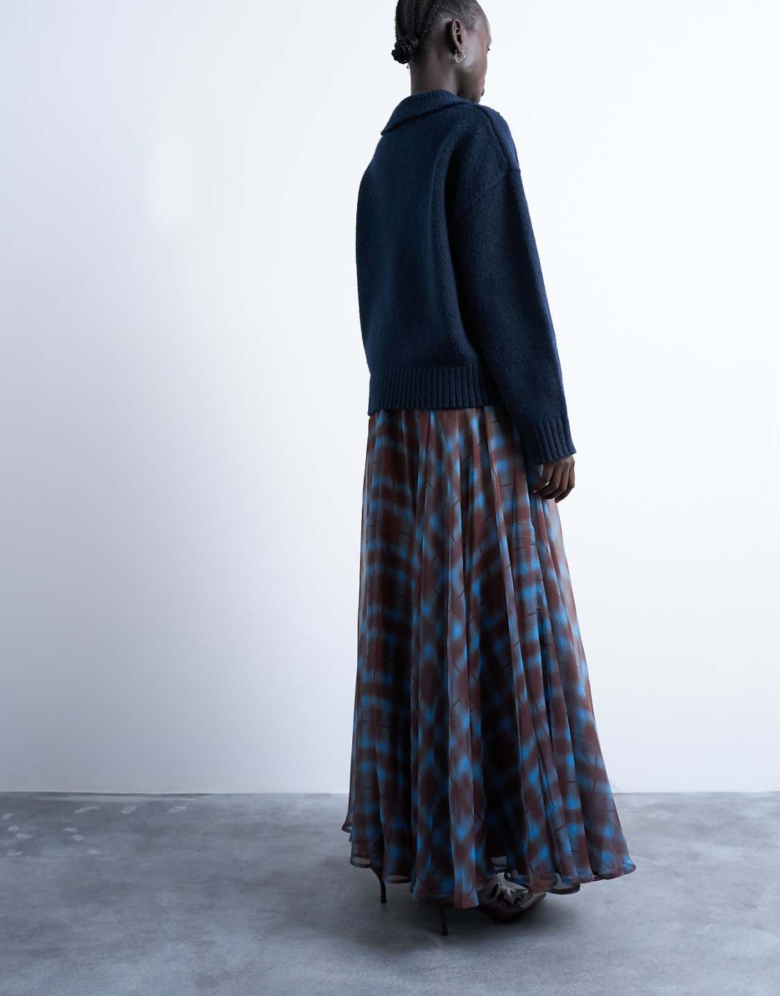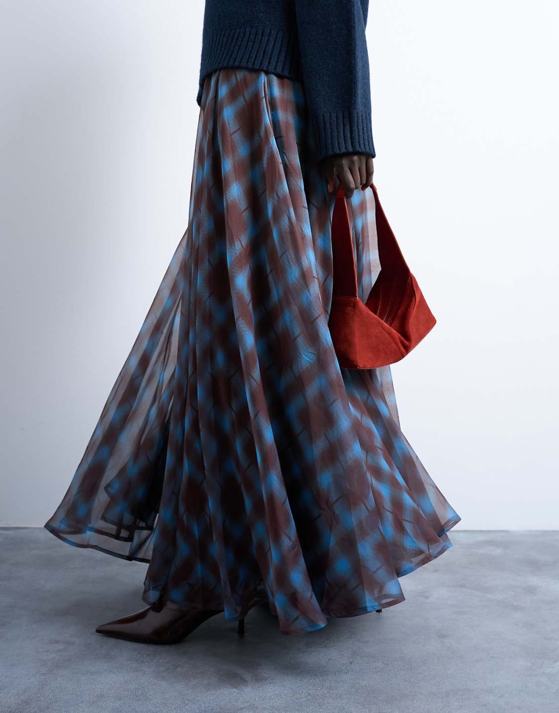 Mavi Kareli Tül Etek