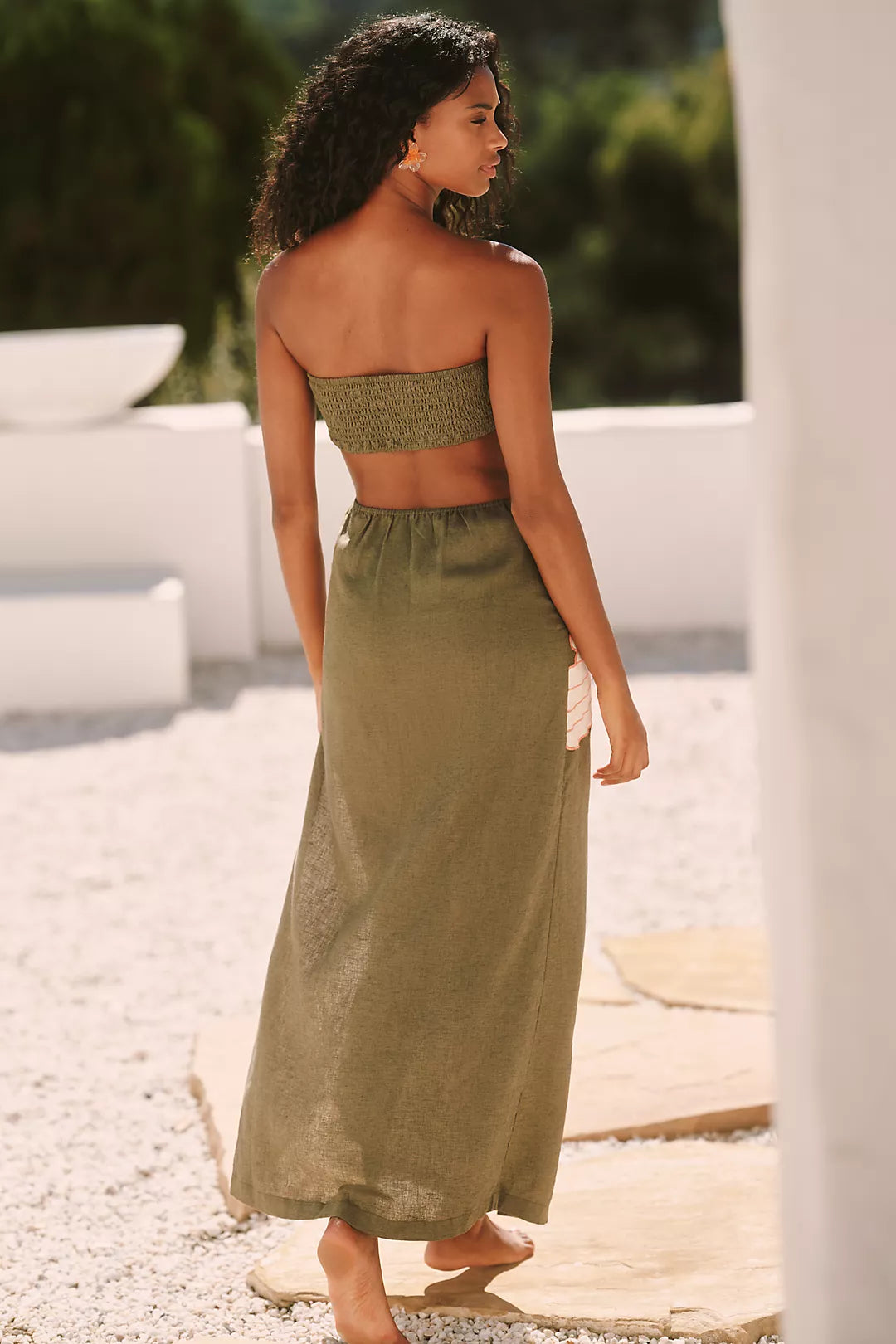 İthal Çiçekli Keten Maxi Elbise