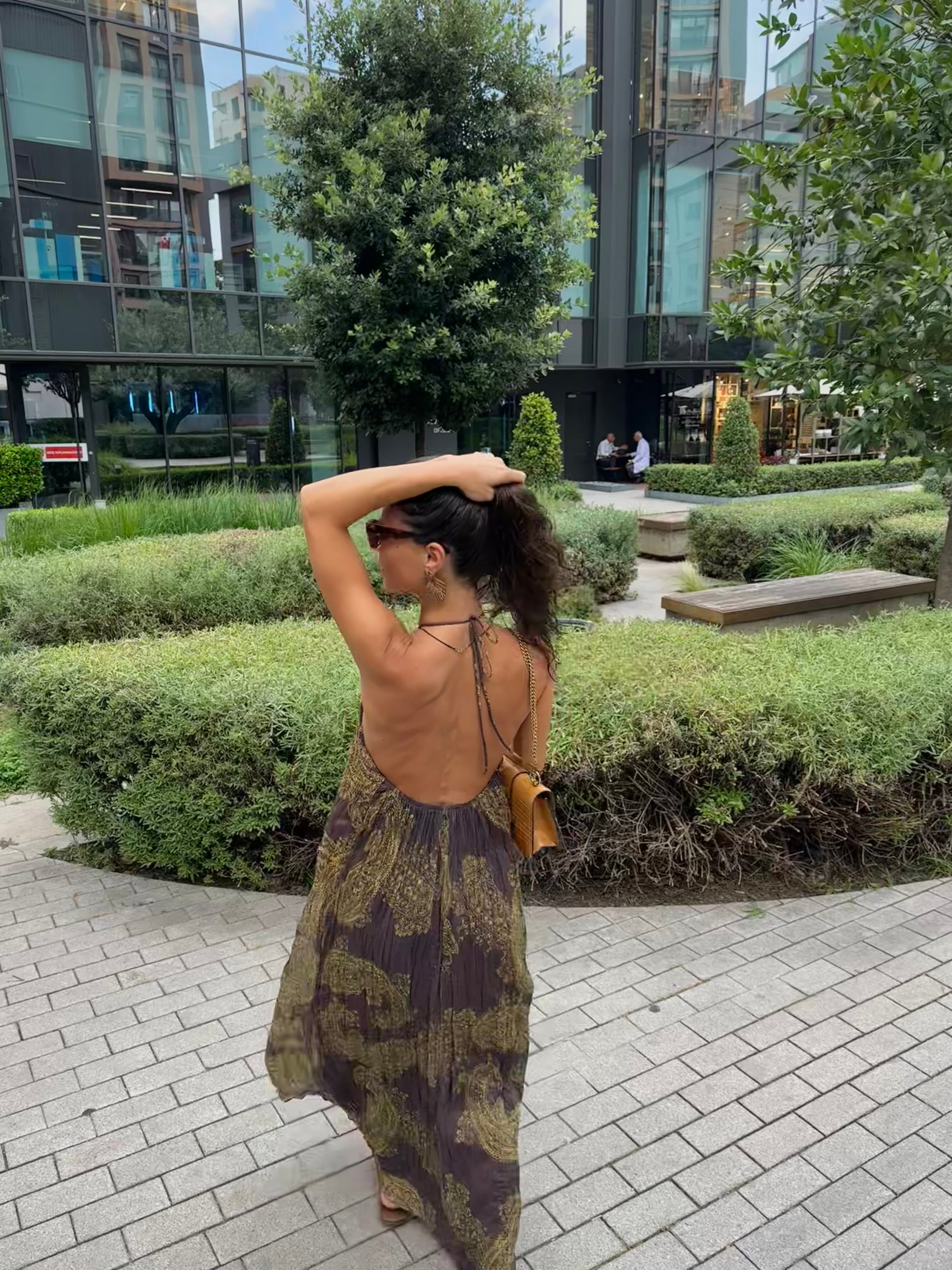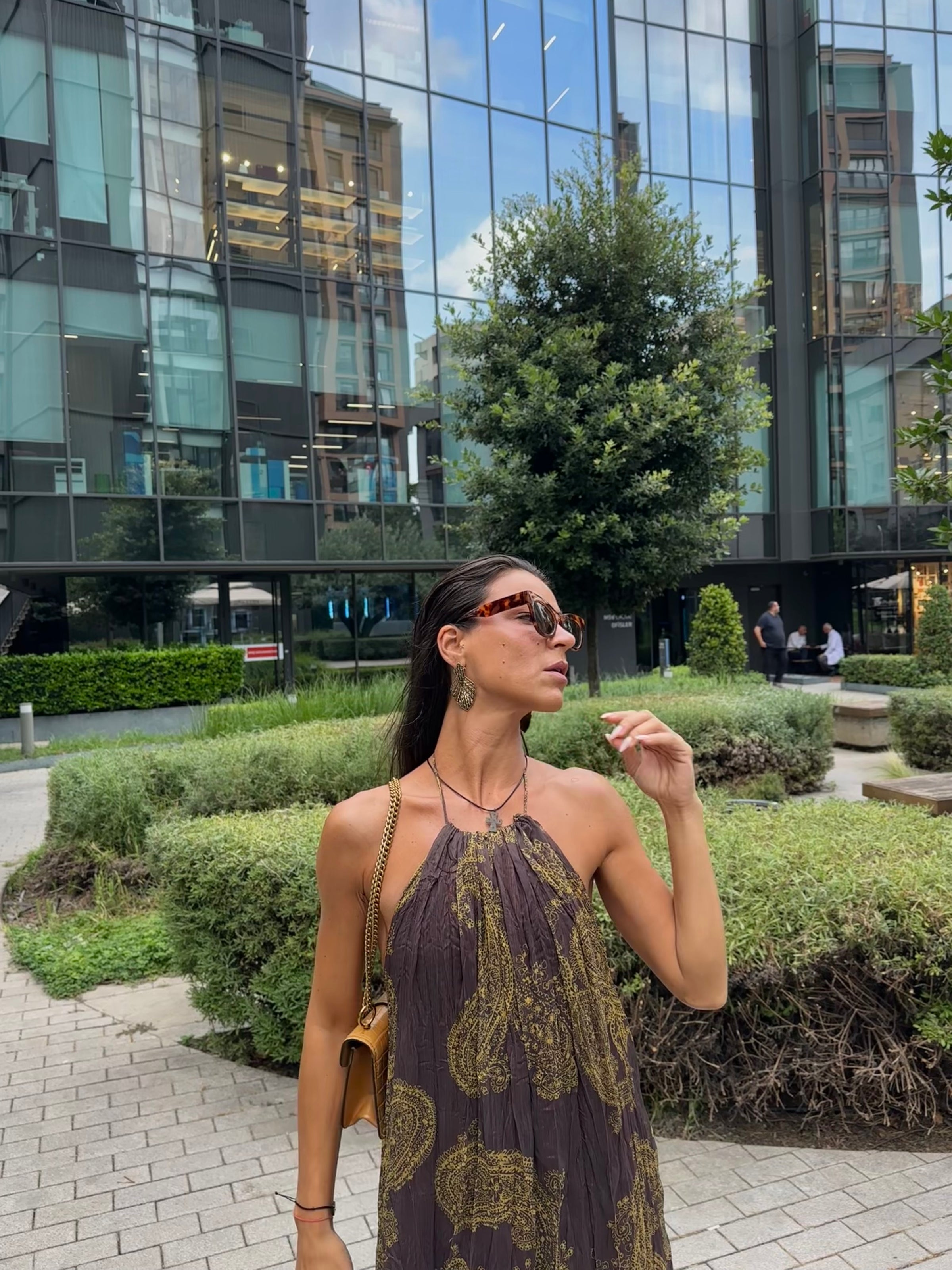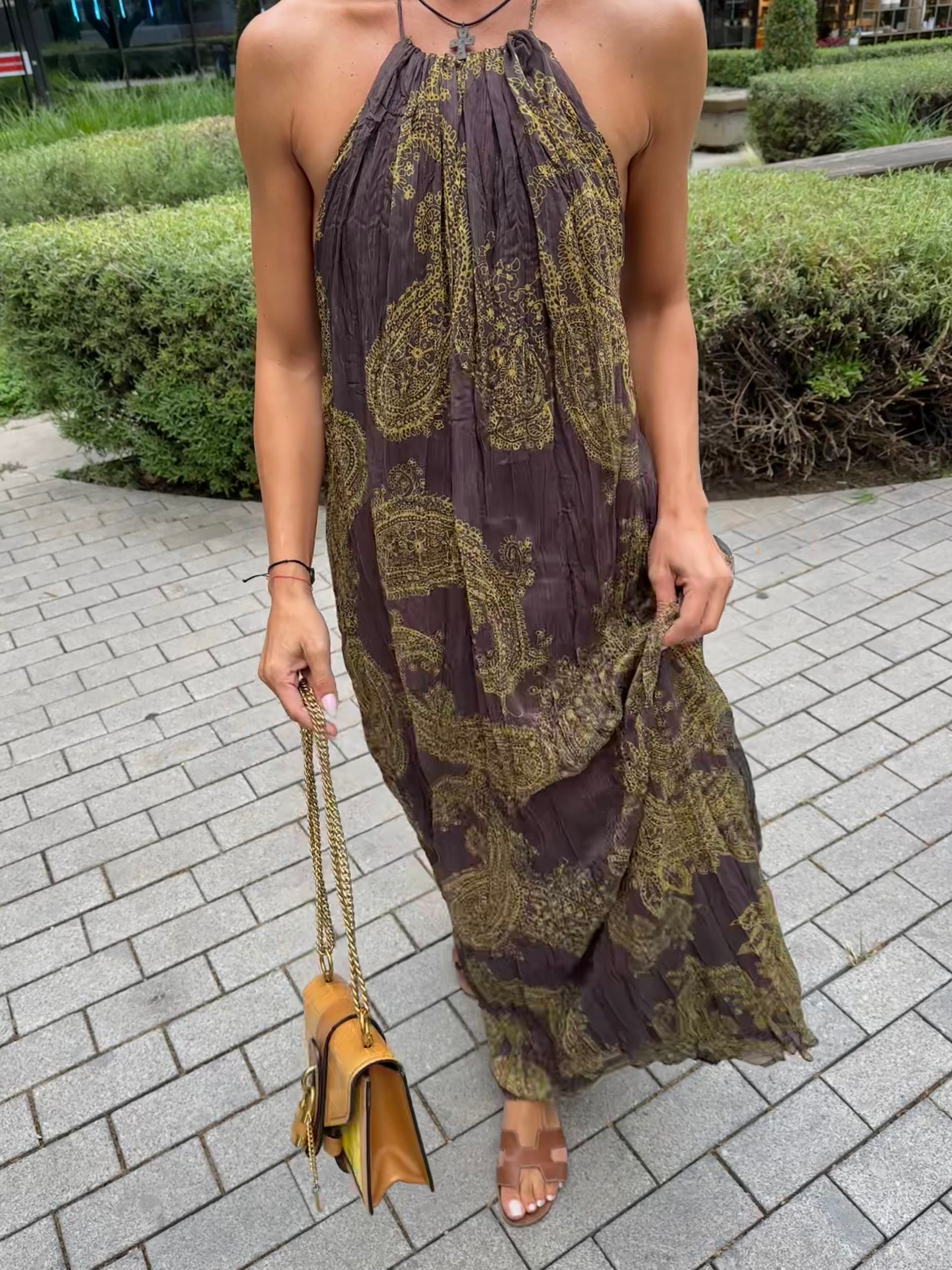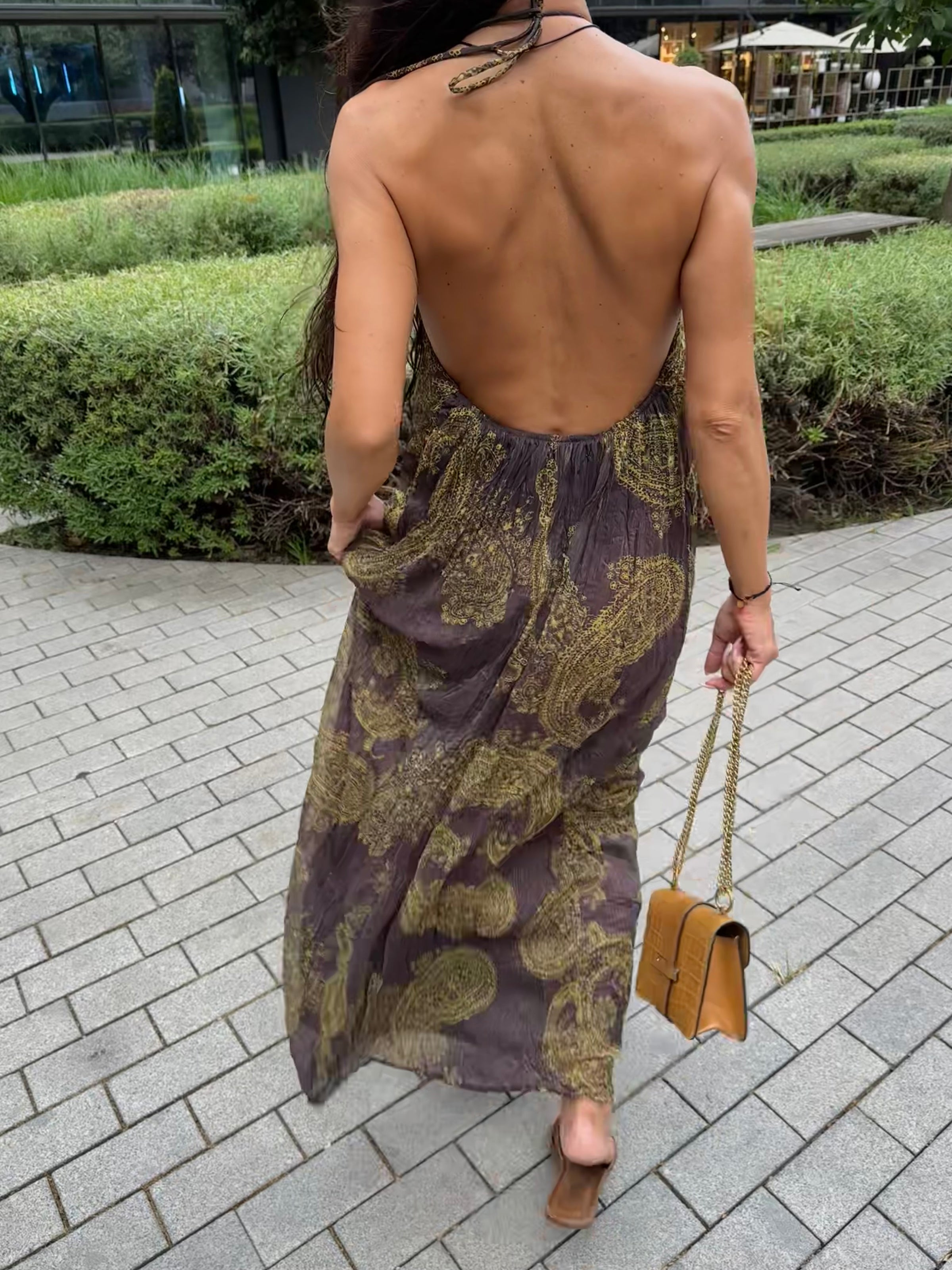 Kırışık Görünümlü Sırt Detay Şifon Elbise