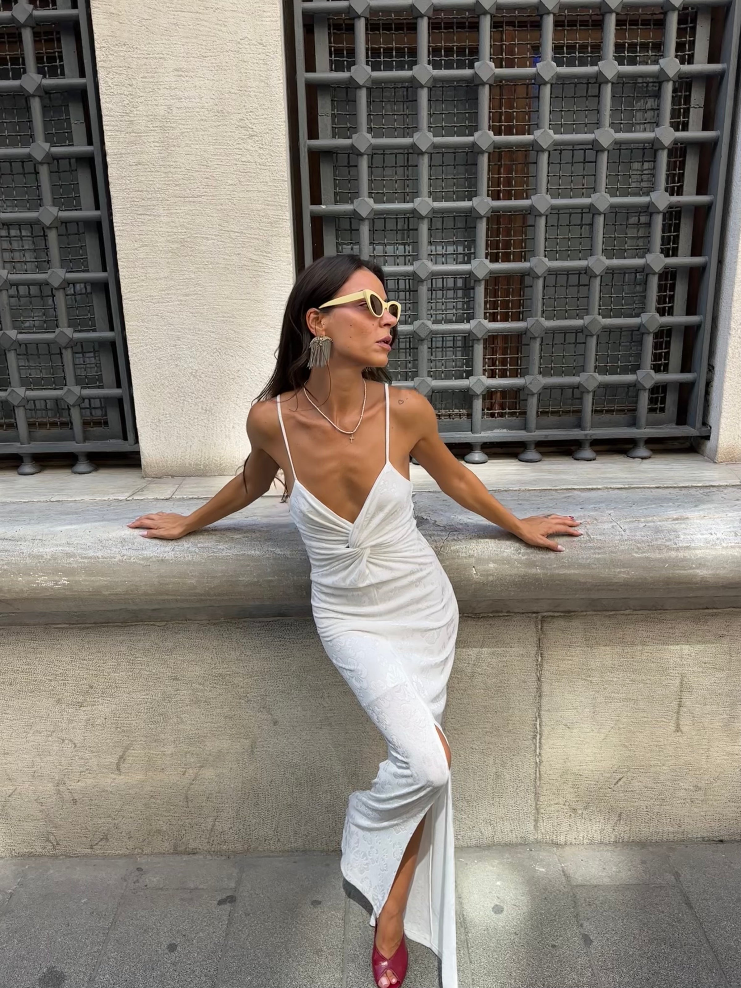 Yırtmaçlı Düğüm Detay Beyaz Elbise