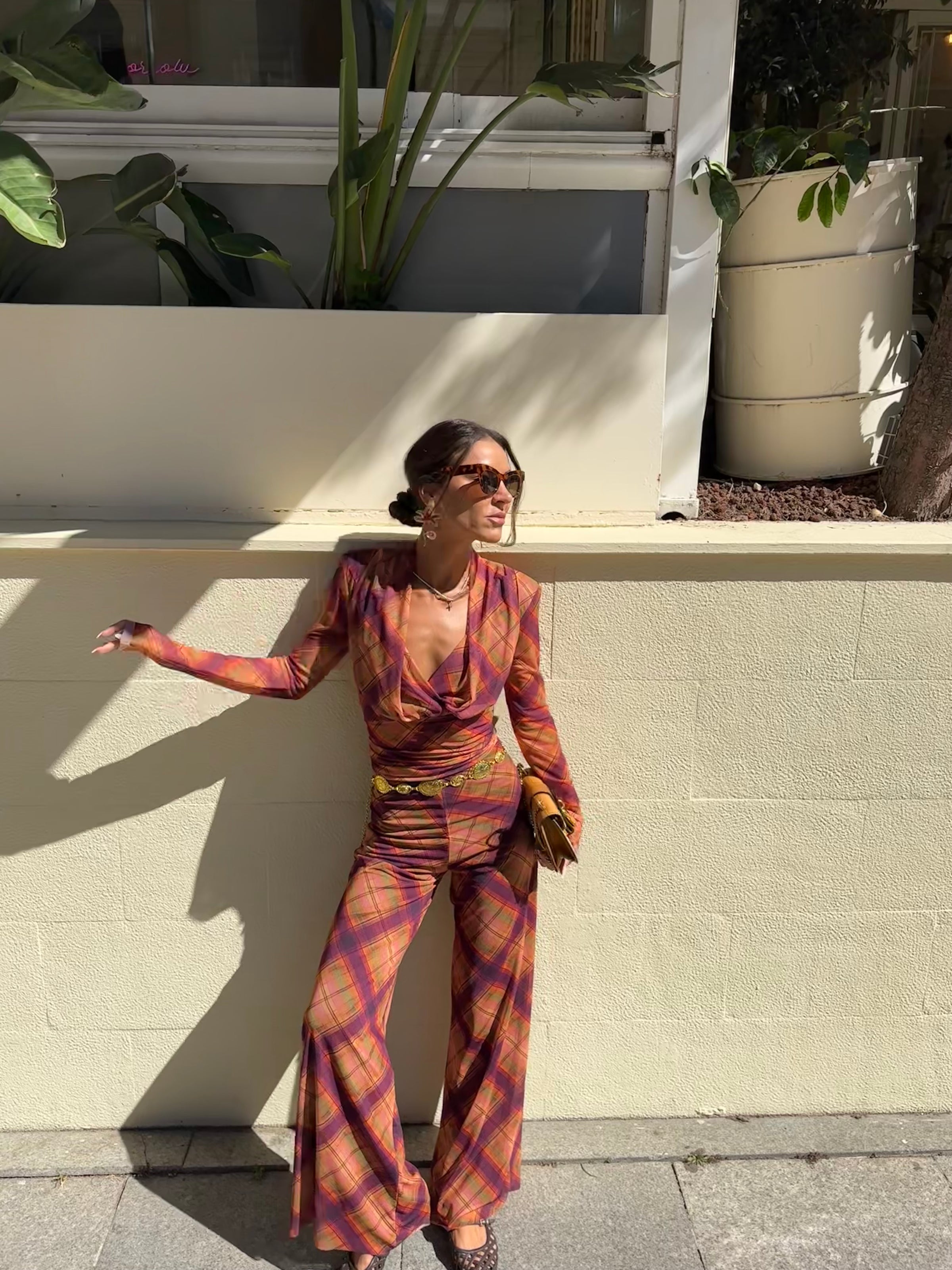 Tül Vatkalı Kruvaze Bluz/Pantolon Takım