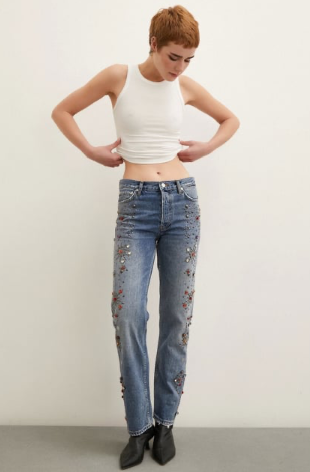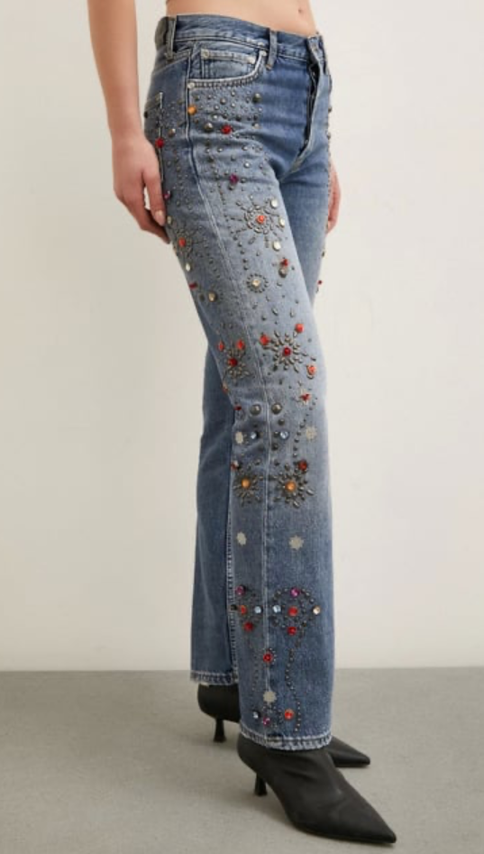 Taş İşlemeli Yüksek Bel Boru Paça Jean